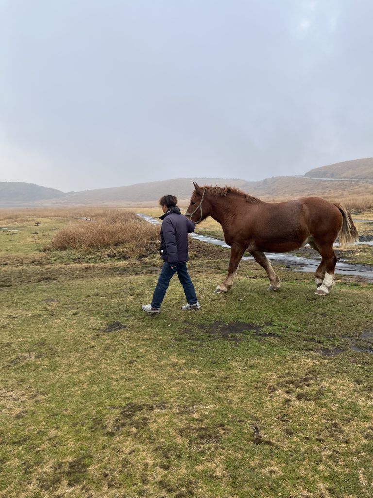あいにくの雨でしたが、阿蘇の最後に草千里ヶ浜に行きました。